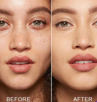 Starts off white and blends into your natural skin tone for a flawless,no-makeup finish.